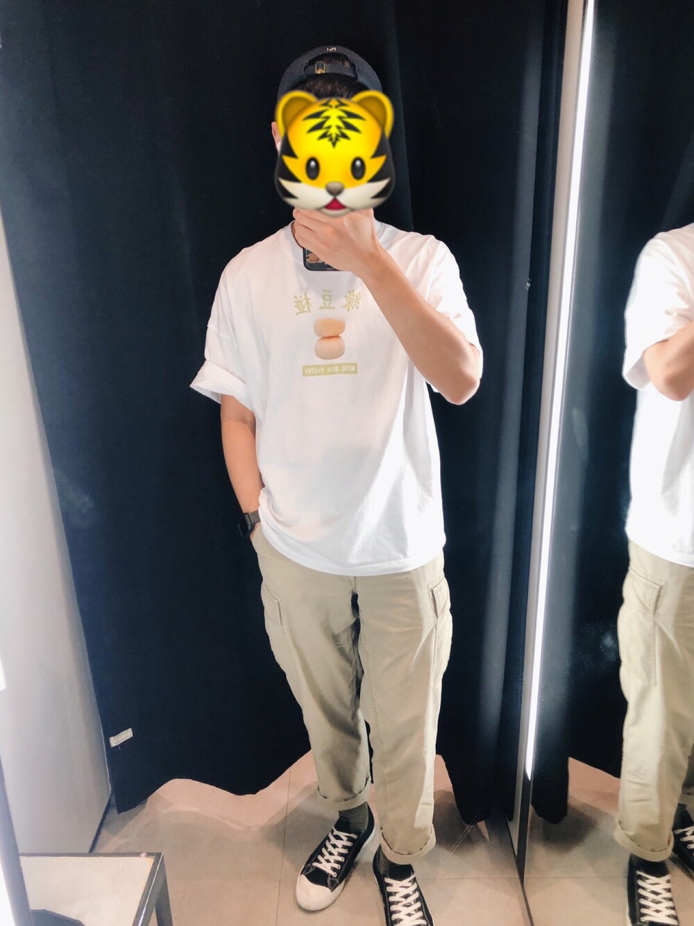 今天是綠豆椪 上衣 朝興基金會 綠豆椪T-shirt 褲子 UNIQLO 工作卡其褲
