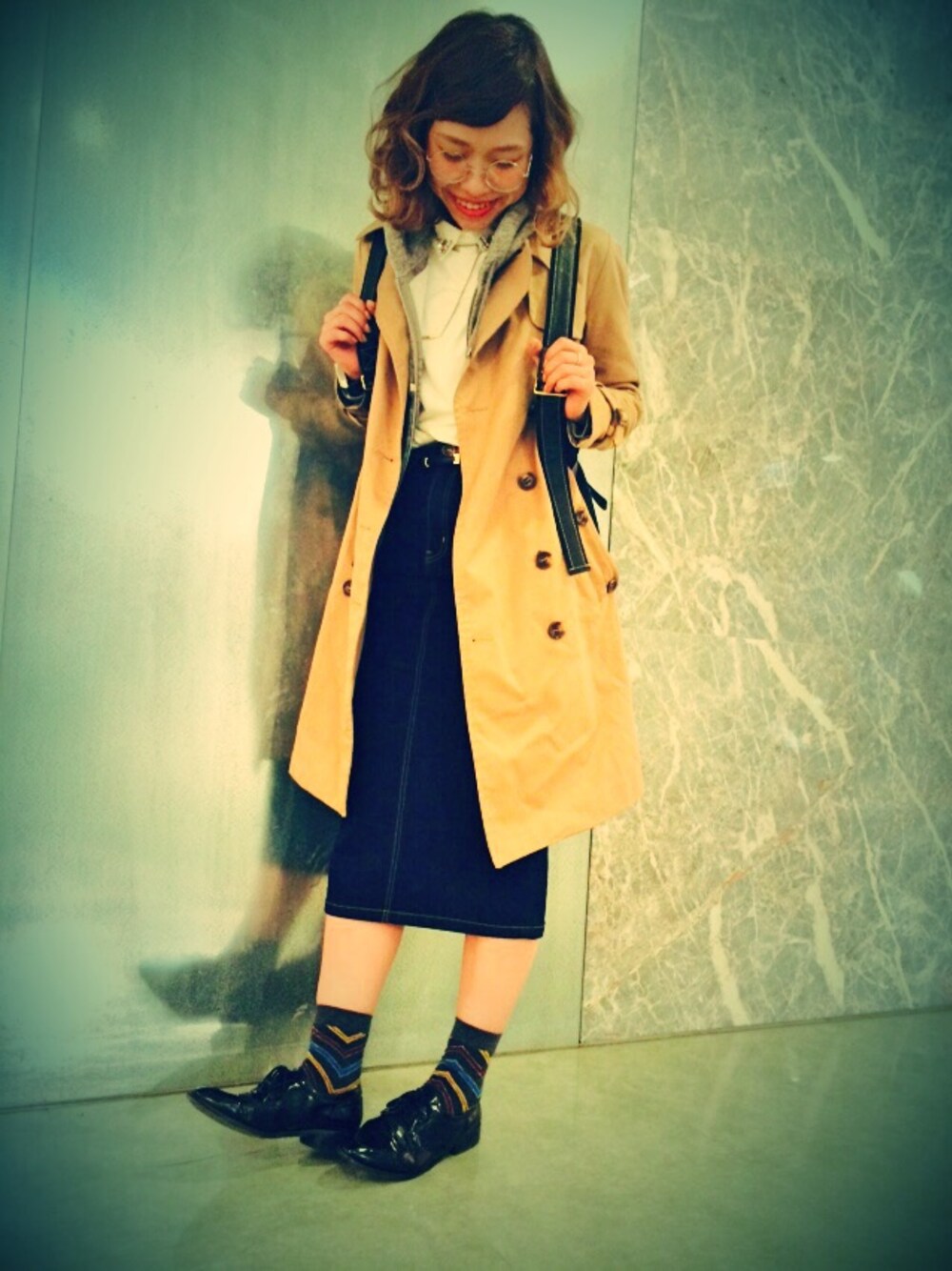 今日の新潟はとても寒い…T_T ので、トレンチ、パーカーでアウターオンアウター♡
