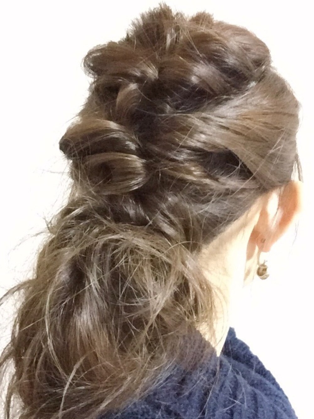 くるりんぱを3段階に分けて、襟足でお団子を作っただけの簡単アレンジです\(^o^)/