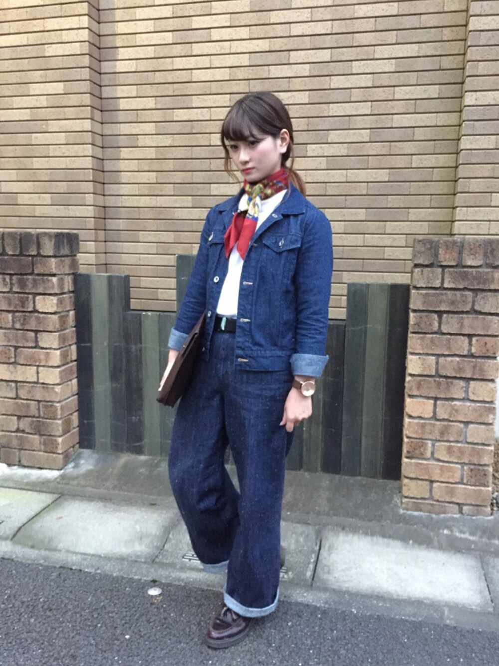 こんばんは!! 先日とは雰囲気のガラッと変わった コーデになります( ˘ω˘ ) デニムonデニムは以前にもやりましたが キャップ→スカーフにするだけで全然違う! 小物って便利ですね✌︎