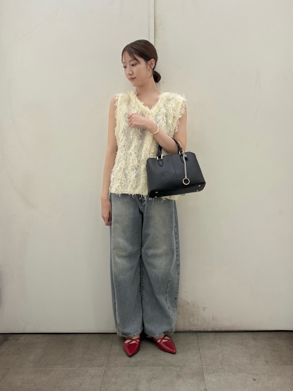 noa(SENSE OF PLACE エチカ池袋)のベスト「コードチュールフリンジベスト」を使ったコーディネート