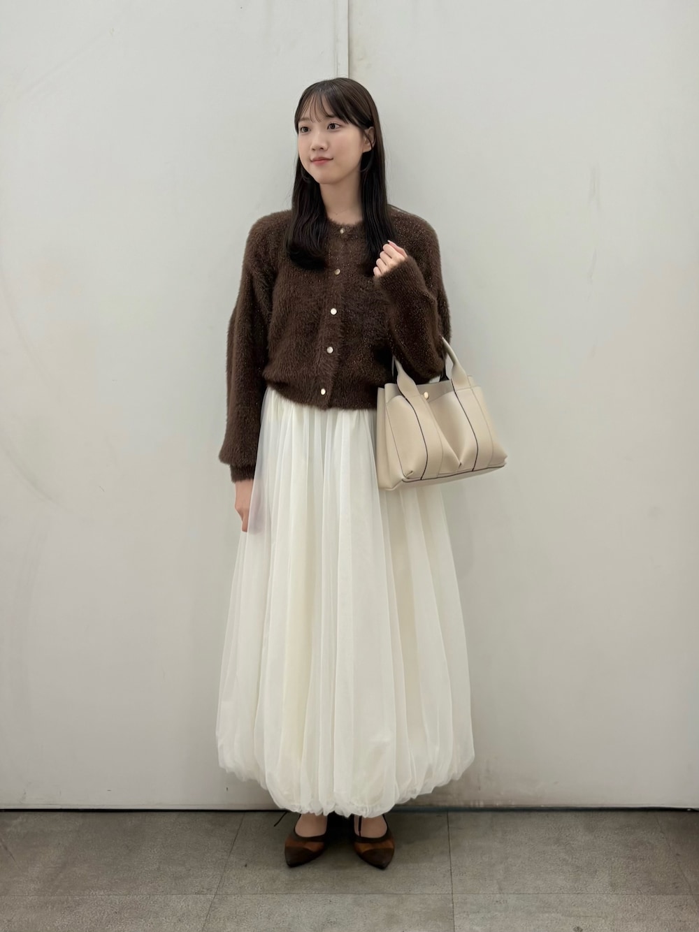 ご覧いただきありがとうございます! 人気のバルーンスカートのチュールバージョンが入荷しました!👗✨ トレンドのブラウンと合わせて綺麗可愛いコーデを組んでみました! 是非参考になったら嬉しいです🍪