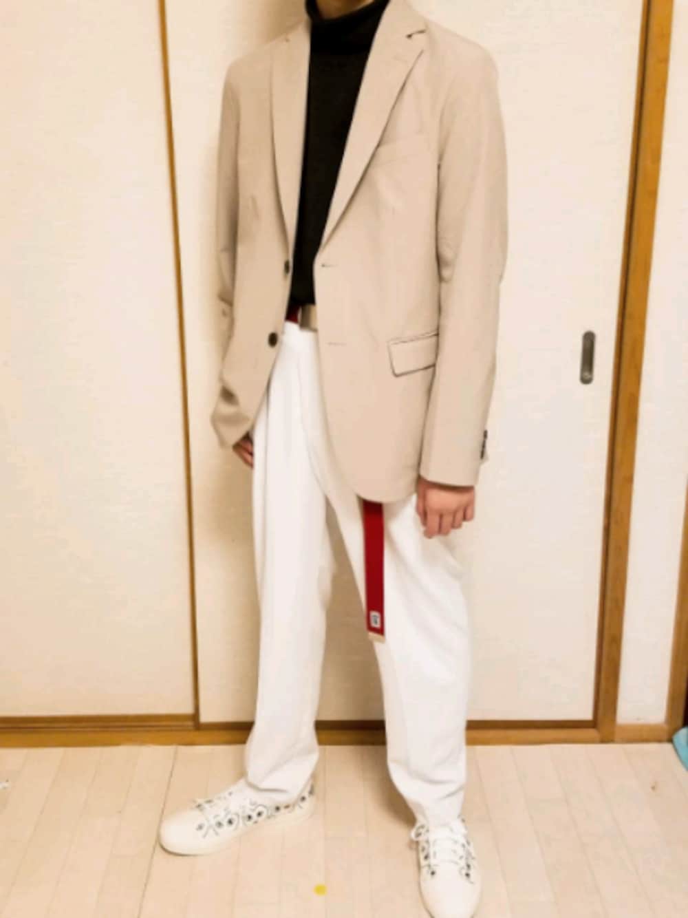 季節外れだけどこんな服装してみました!。トレンドの白パンツがカッコいい!後スニーカーコンバース×コム・デ・ギャルソンプレイのコラボスニーカーです!