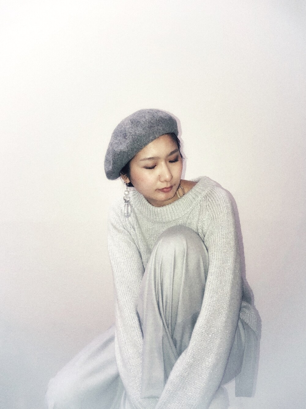 ピアスはハンドメイド。 今年のグレーは明るめがキレイ。
