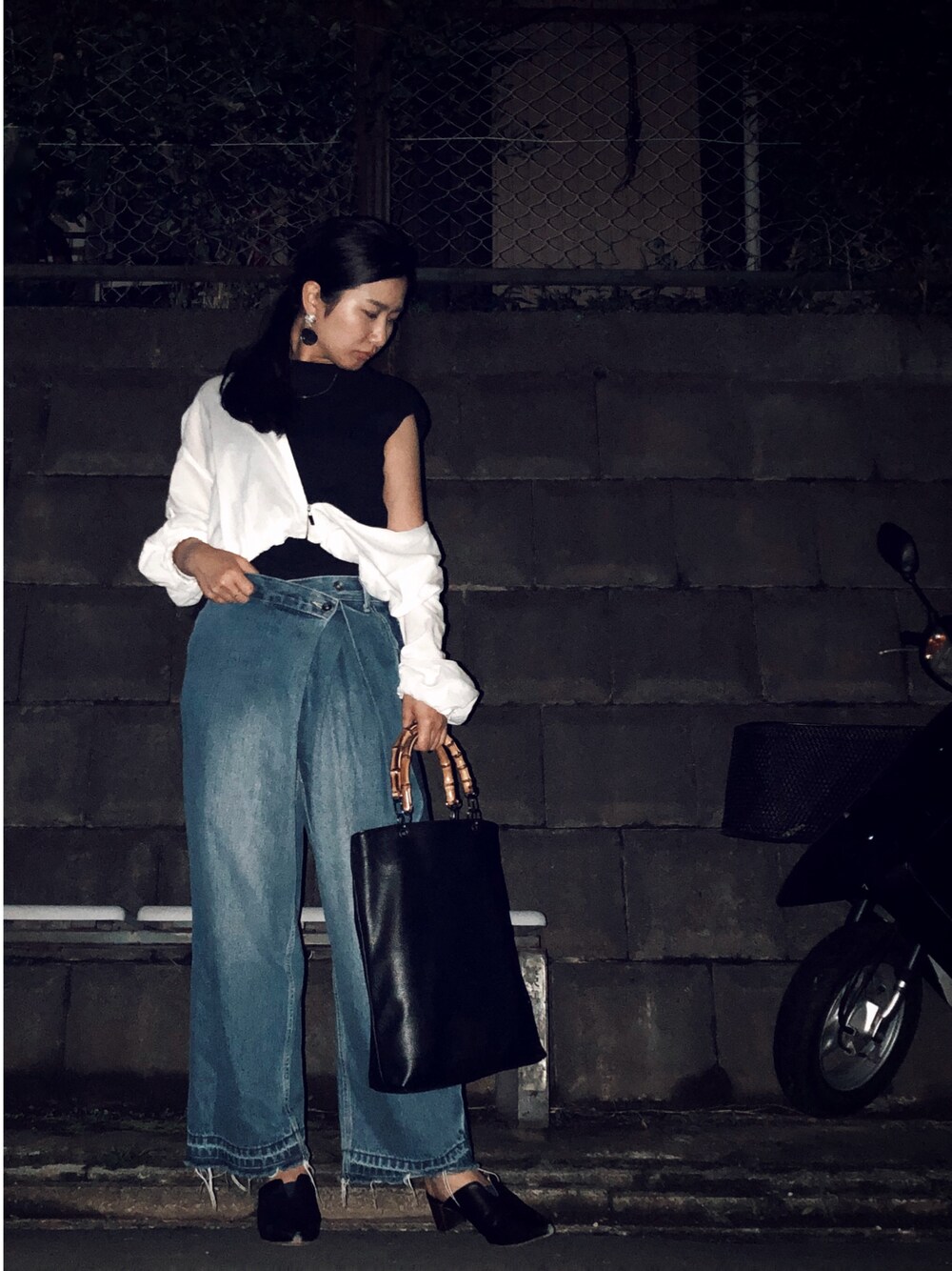 デニムと白黒。