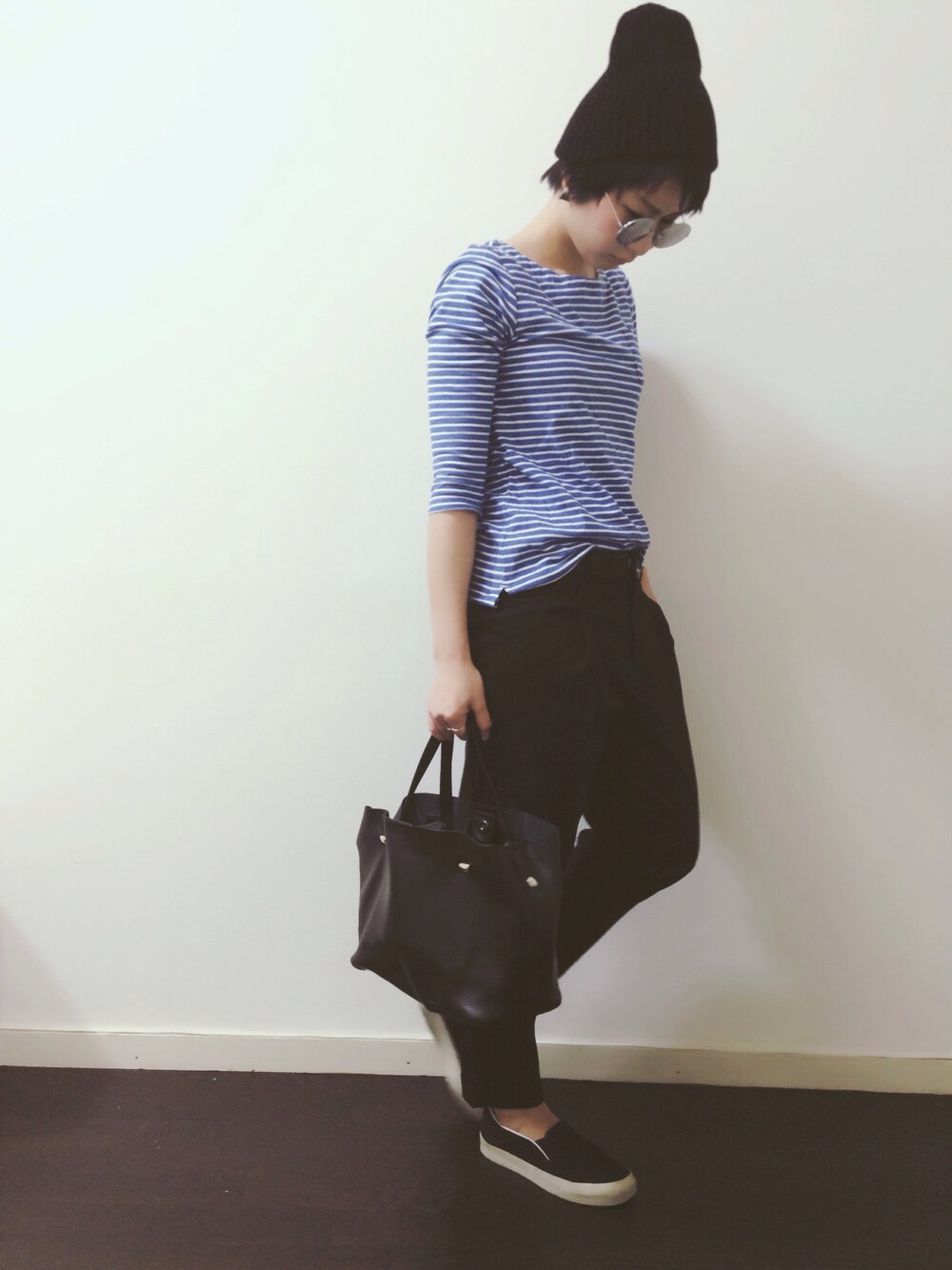 サングラス、サラッとかけたい。 通勤まだ恥ずかしいので、 外して行きます…(〃v〃)笑 伊達眼鏡にすれば良かったかな。 えーと、1週間 青のアイテムで過ごして。 と言われたら、 余裕で過ごせます♫笑 頭ツンツンだったから、 ニット帽で押さえ込みの術。 ニンニン♫