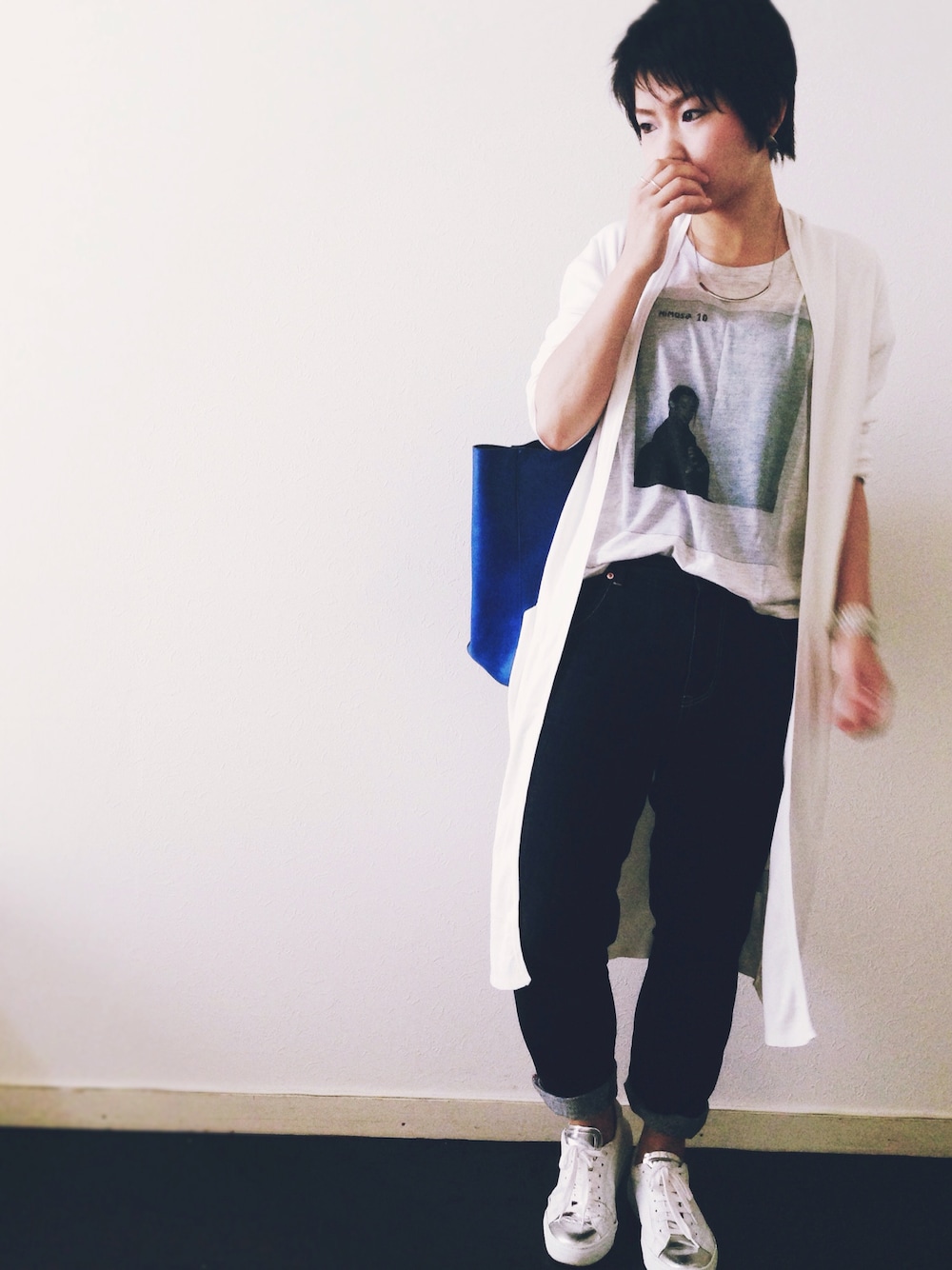 もーう、じゃあ、今日も青! チラ見えしてるのは、 デッカいレザーのトートです。 眠いーーねむねむ。 行ってきます。