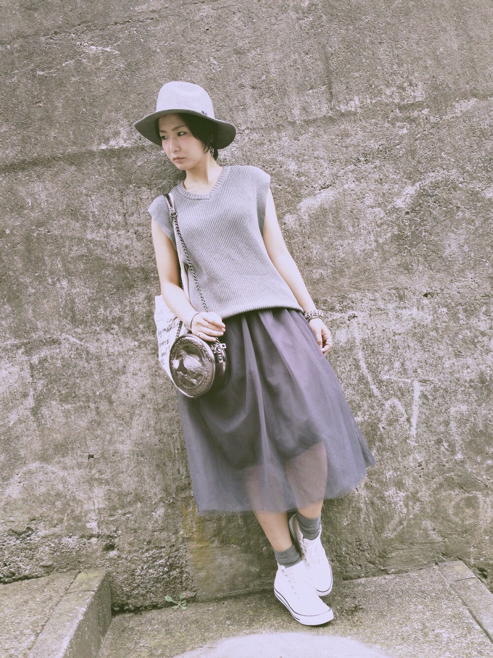 こないだは添削だったから、 お出掛け仕様で、オールグレー。 思い切ってトレンドもりもり。 つば広ハット、ノースリーブニット、チュールスカート… 自己満バンザイヽ(。>▽<。)ノ 今日は近所の森?の中で撮りましたが 足元が分かりづらくて… メインにしても、アリなのかわからず。 小窓に詰めてみました(❛ᴗ❛人)✧ それでは。