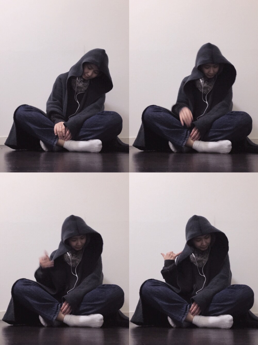 サボりがちですいません。 すっぴんだからフードでごまかしちゃいました。 靴も脱いじゃったから、座っちゃいました💦 (一応、立ってみたのも撮りました♫) ボリュームニットとフードコート、 きわめつけはフレアデニムで、 ボリューム感満載のコーデ。 足元は白ソックスに白スニーカー。 最近これがお気に入りみたいです。 で、ポーズは、電話ポーズ。 英語の発音て電話越しってまぁ聞きづらいので、 イヤフォンマイク必須です。 周りには、 あの人何独り言喋ってるの? って思われるけど。笑 じゃあ、明日も早いので。 こんな気まぐれ更新にお立ち寄り感謝! バイバイ⑅◡̈*