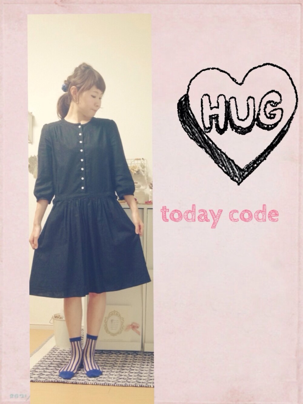ブラック系のワンピース、ブルー系のソックス/靴下を着用したレディースの秋コーディネートの1枚目の写真