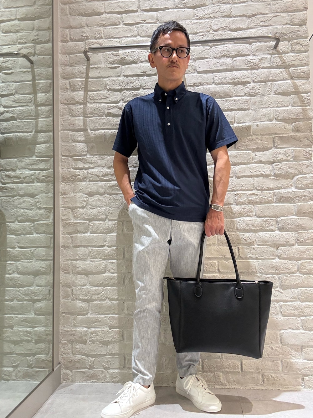 nobg(アバハウス 三井アウトレットパーク横浜ベイサイド店(MEN'S))のポロシャツ「トリコットサッカー ボタンダウン ポロシャツ」を使ったコーディネート