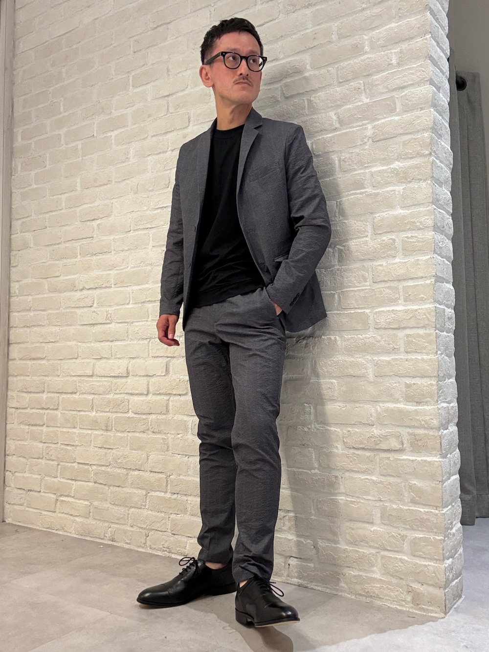 nobg(アバハウス 三井アウトレットパーク横浜ベイサイド店(MEN'S))のセットアップ「【上下2点セット / 軽量 / ハイパーストレッチ】ワッシャー プリント ジャケット / サマージャケット セットアップ / スーツ」を使ったコーディネート