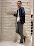 ◀︎MY SIZE▶︎ ⭐︎171㎝/63kg⭐︎ トップス👔→46 春先使える鹿の子素材のジップパーカ。 ネイビーが絶妙に使えます! インナー👕→46 シンプルなロゴロンT。リブ使いでスッキリ見えます! ボトムス👖→46 細身です。1サイズUPしております。 セットアップパンツでもカジュアル使い。 グレンチェックがシャレてます!