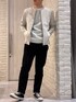 ◀︎MY SIZE▶︎ ⭐︎171㎝/63kg⭐︎ トップス👔→46 スエードライクで着心地滑らか、伸縮性抜群、ウォッシャブル。 デザインもスッキリ、春先便利です! インナー👕→46 ワッフルの素材感が春先ちょうどいいです! ボトムス👖→46 細身です。スラックスタイプのデニムなのでオトナらしく。