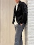 ◀︎MY SIZE▶︎ ⭐︎171㎝/63kg⭐︎ トップス👔→46 ソフトで伸縮性高いフェイクスエードが上品です! インナー👕→46 ジオメトリック柄がインナーとしてもアクセント。 ボトムス👖→46 細身です。1サイズUPしております。 セットアップのスラックスタイプでオトナらしく!