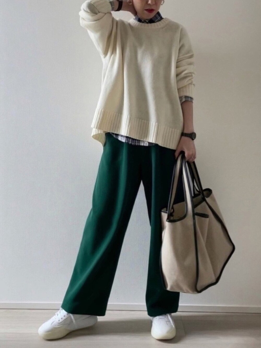 皆様おはようございます☀ いつもご覧いただきありがとうございます😊 いいね、セーブ、フォロー、フォルダーに入れていただく事もありとても嬉しいです。 皆様に感謝しております🙏 ホワイト✖️グリーン インナーにチェックシャツをレイヤード。 ゆるっとカジュアルで大人コーデを楽しむ♥️