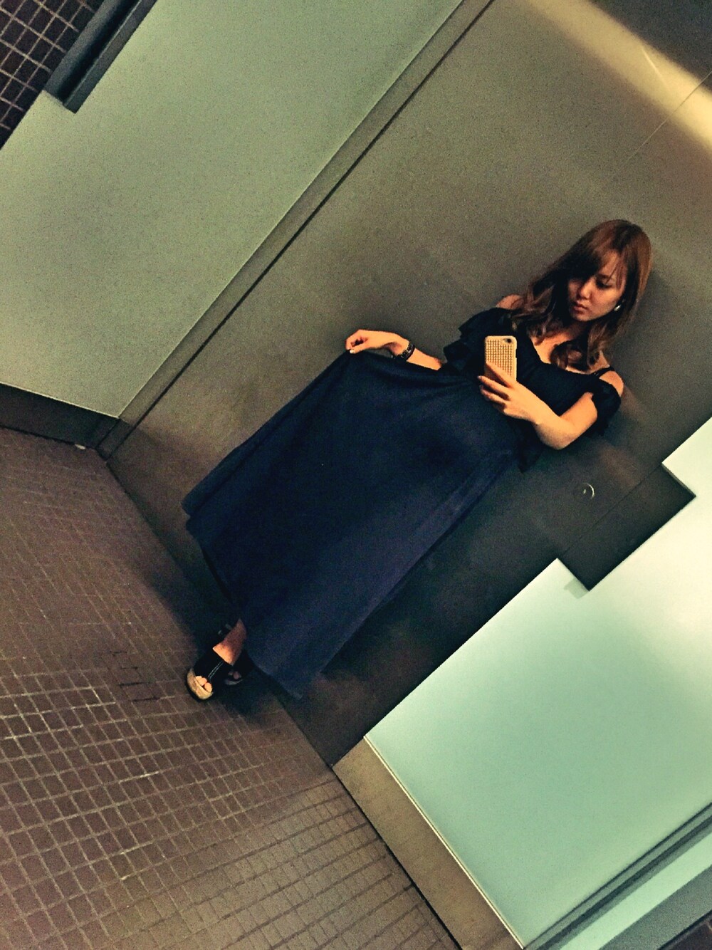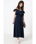 ネイビーのロングワンピースは3wayで着れるので、フリルで二の腕隠しも出来ます❤