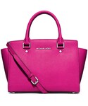 オールホワイトコーデ✨ ヘアスタイルもハーフアップでお嬢さまっぽい〜👧(笑) マイケルコースのピンクバッグがより女の子度を上げてくれてるかも❤
