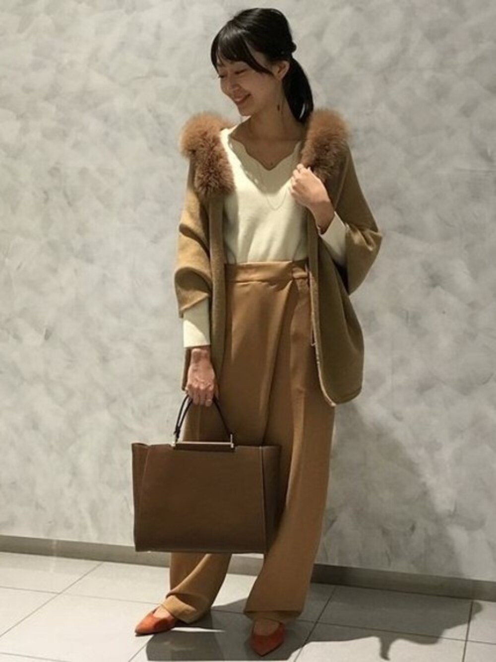 総針スカラップニットPO スカラップカットのVネックがデコルテを綺麗に見せてくれる大人フェミニンな1枚 フィット感のあるニットにはファーポンチョを合わせてぐっとエレガントに