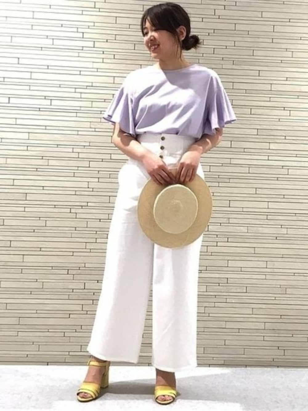 ソデフレアープルオーバー 袖フレアがコーディネートのアクセントに。 パープルに爽やかな白いパンツを合わせて、大人の休日スタイリングに。