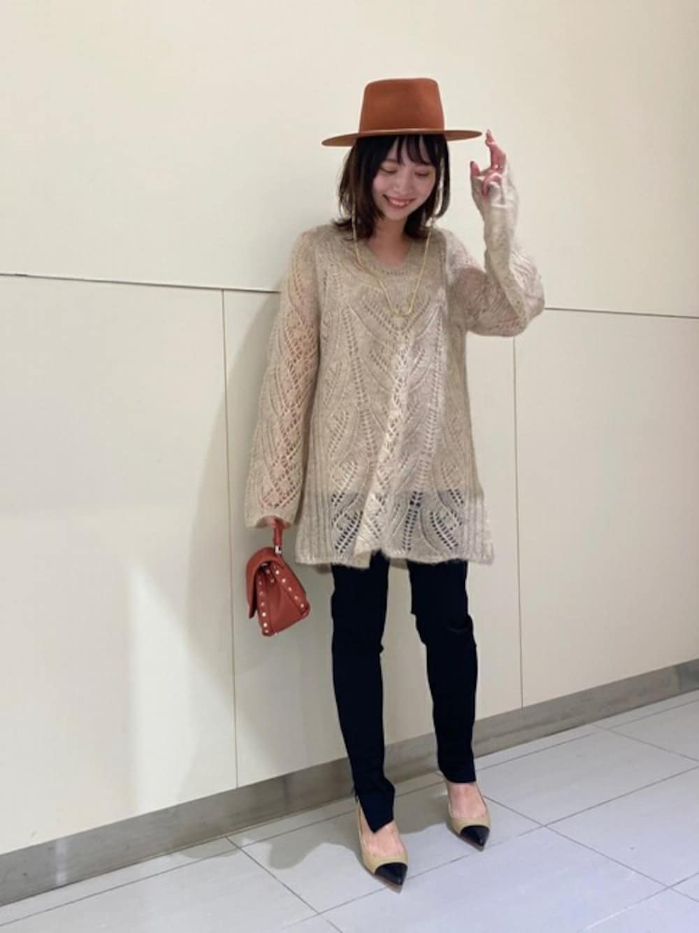 モヘアスカシアミニットモヘアの透かし編みが目を惹く、シアーな表情のニットプルオーバー。スキニーパンツでボトムスをすっきりさせると、ニットのシルエットがより強調されます!足元は華奢なヒールでこなれ感をプラス!