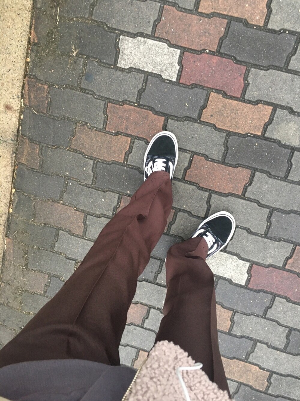 靴にクッションがかかり足が長く見えるパンツを探してました。 そんな時にふと入った古着屋で見つけてしまいました笑 色味が合うようにコーデしました〜
