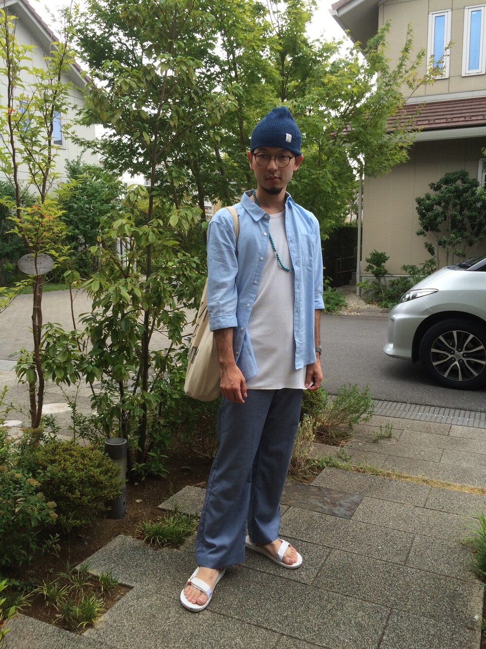 今日はいつもとイメージ変えて清涼感のあるブルーコーデです! なんかメガネにニット帽でRENTのマークみたいな感じになりました(笑)
