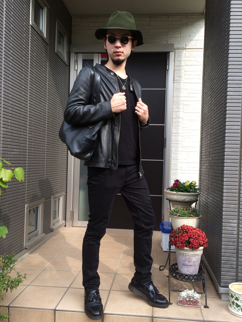 今日はタグランキング一位がレザージャケットだったので、昨日に続きレザージャケット! 今日はオールブラックにしました♪ 昨日偶然出会えたカーキのハットと、面白いデザインのサングラスを差しました! 同じ黒でも素材がみんな違うので、無難になってはいないかなとは思います!