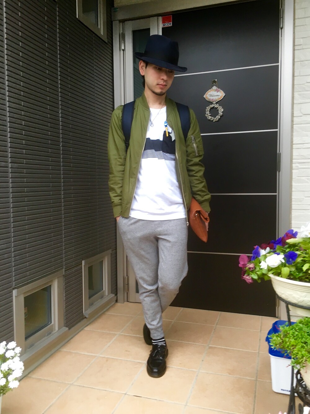 おはようございます! 結構本格的に雨ですね… 雨は嫌いです(´・ω・`) 天気悪いのでかなりラフなコーデで。 SSカットソーとスウェットパンツでトレンドのMA-1をさらに着崩しました。 ハット、クラッチ、レザーシューズで自分らしさは失わないようにしました。 やっぱり白とカーキはいい組み合わせですね! 全身グローバルワークです! 胸元にはジーニーのペンと、星型のクリップつけてみました!(笑) それではお仕事行ってきます!