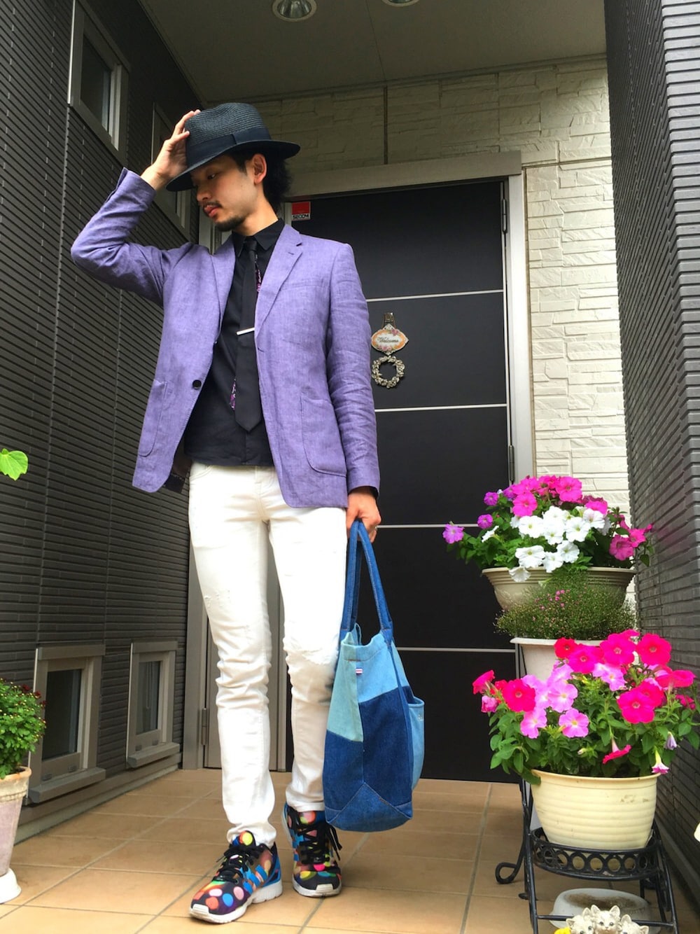 こんにちは〜 お仕事休憩中です。 いつもいいね、SAVE、コメント、フォローありがとうございます! テーマ『アモーレ系男子』 なんだそれって感じですが、最近何かと話題なアモーレ。今日はイタリア風なコーディネートにしました。 黒シャツ黒ネクタイでマフィア風な雰囲気を出しながら、白のダメージデニムとラベンダーカラーのリネンジャケットで欧州の大人の男って感じの雰囲気にしました(笑) 靴はレザーと迷ったんですが、カラフルスニーカーで、ラテン的なイメージで! なに言ってんだって感じですがイメージはイメージです(笑) それではお昼食べてきまーす。
