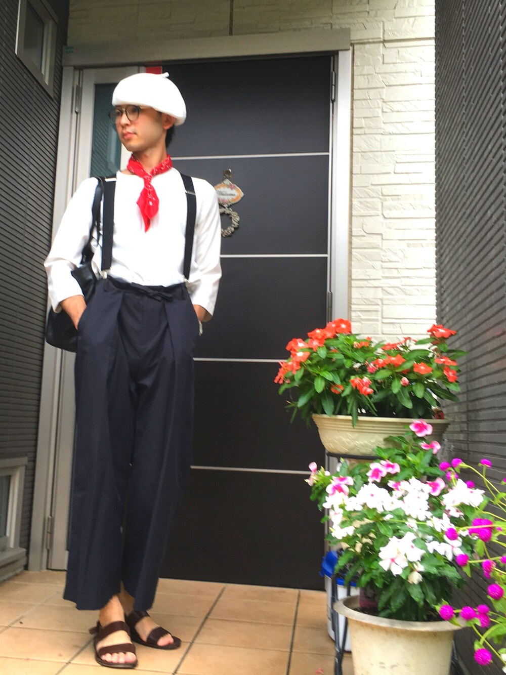 こんにちは〜☀️ お仕事休憩中です💡 今日は相互フォローのKOROさんのコーディネートの影響で、サスペンダー&ベレー帽&メガネを使ってみました💓 KOROさん勝手に真似しちゃってごめんなさい(´◦ω◦`) トップスはHAREのノーカラーシャツ、パンツは今朝届いたHAREのスーパーワイドパンツをチョイスし、モード系の合わせにしつつ、上にあげた三種の小物と、スカーフ、サンダルで外しました☝️🎀 このパンツ袴みたいなデザインが個性的で可愛いです🎆🎇 なんか普段の感じと違う古着屋とか雑貨屋にいそうな雰囲気のコーディネートになりました😁✨ 親には靴磨き、スタッフには不二家の店員さんと言われましたが(笑) 毛色の違うコーディネートもたまにはおかしくないですかね? それではみなさんのところ伺います〜🏇🏿