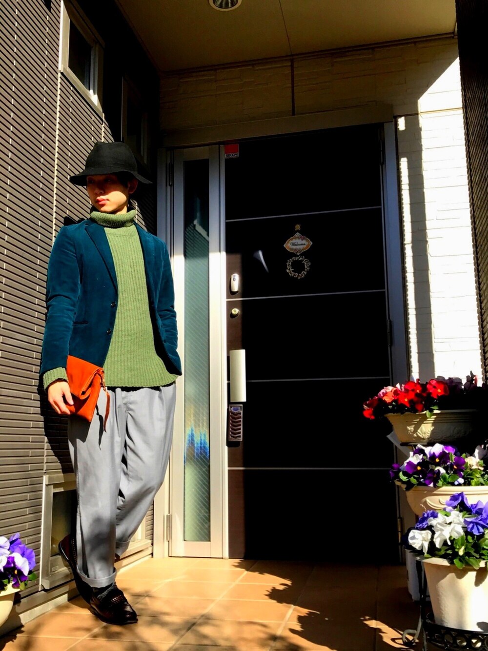 こんにちは〜〜! 今日は久しぶりにグリーンベースのコーディネート꒰✩⌯௰⌯꒱◞ 抹茶色のタートルニットにモスグリーンのコーデュロイジャケットを合わせて、グリーンのグラデーションっぽくしてみました🌟🌟 グリーンは秋冬色ですが、ワイドスラックスで淡いグレーをチョイスして、春らしさも加えました☘☘ スタッズローファーで無骨さを加え、靴のブラウンをクラッチで拾いました❣ ただ、このニット、もともと大きめなのに、あえてLサイズなので重ねてきてみたら若干着膨れが目立ちますねー(´・ω・`) ワイドなこともあり気づいたらデカデカコンビになりましたねー😅まぁ実物だとそこまで悪くないからいいかな。 写真じゃわかりづらいですけど、ワイドパンツを太めにロールアップして抜け感を出してます👍 それでピックアップタグの『ロールアップ』にのっかりますね🎵🎵 そんなとこです! それではお仕事行ってきまーす!