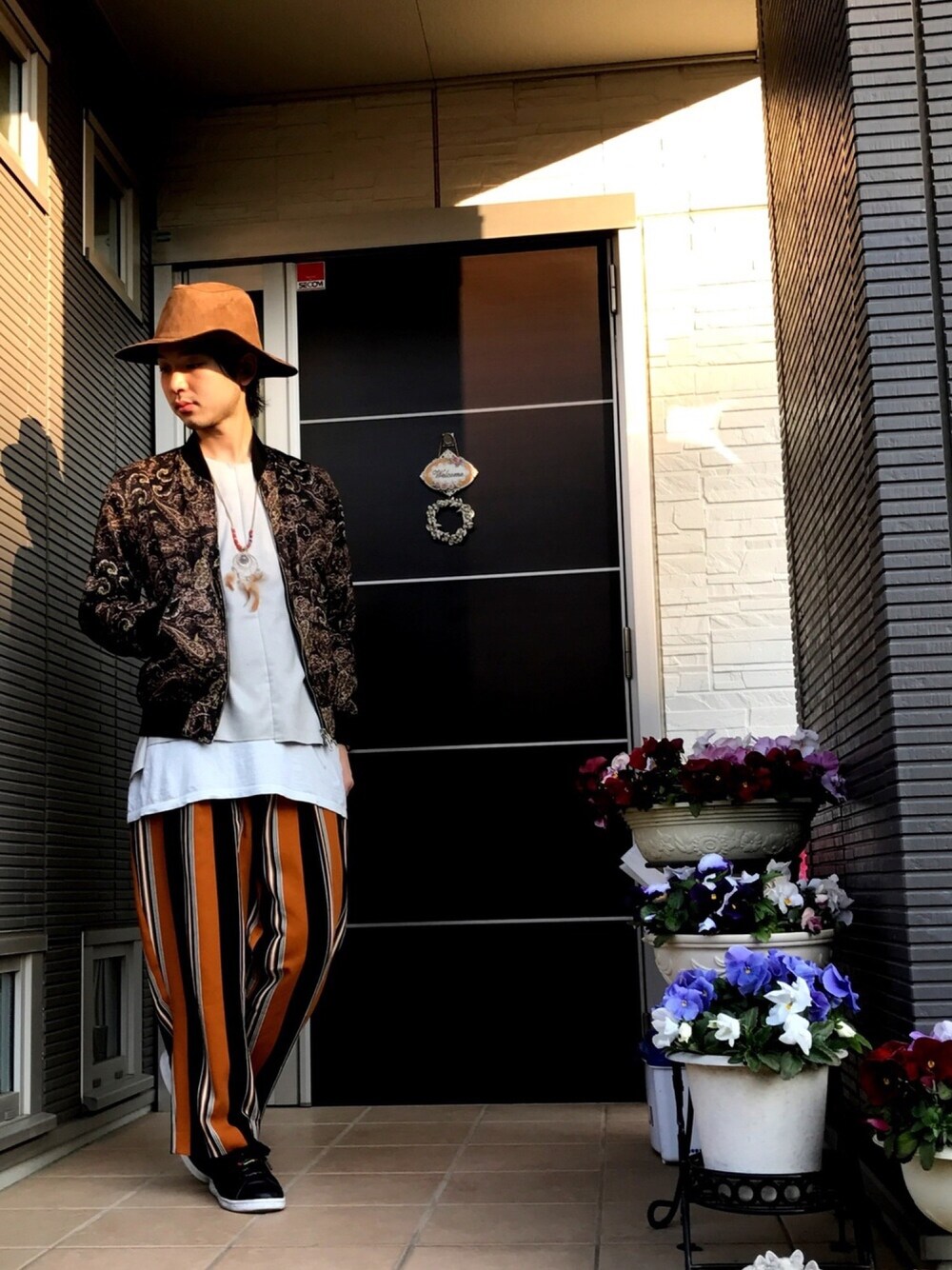 おはようございます☀ 今日は20度近くまで上がるみたいですねー(*´∇`*) ようやく春がやって着ましたねー!! 花粉症の俺にとっては地獄の季節ですが、ことファッションにおいては最高の季節ですよね❤️ さて、そんなこんなで春がやって着ますが、今年のSSトレンドに浮上してるのが『アフリカン パンク』です! せっかく春らしい気候になるそうなので、トレンドイメージでスタイリング組んでみました꒰✩⌯௰⌯꒱◞ HAREのクレイジーストライプパンツをベースに、ロングカットを挟みつつスエードトップスを合わせることで素材感で遊び、上からペイズリー柄ブルゾンを羽織りました❤️ ブルゾンはリバーシブルなのでひっくり返した無地バージョンのコーデも小窓にあげましたが、個人的には柄×柄のが好きです😆🌟 チャイハネのドリームキャッチャーネックレスを合わせて民族感をより加えました(ˊ•̤ω•̤ˋ) 柄×柄も要所要所に白黒グレーといった定番色はさみこめばアリだと思ってます😆🎵🎵 そんな感じです! にゃんにゃんフェスもよろしくです😻😻 それではお仕事行って着ます꒰✩⌯௰⌯꒱◞
