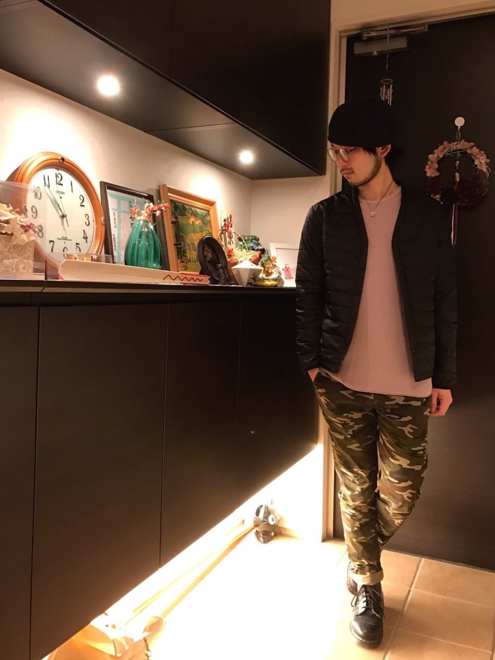 おはようございます☂️ 天気が悪いので家撮りです!🏡 今日は久しぶりにカモフラパンツを履きたかったコーデ꒰✩⌯௰⌯꒱◞ ピックアップタグのベレー帽を被って、花粉症対策に眼鏡🌟🌸 ピンクのカットソーで春らしさを出しつつ、ダウンカーディガンを羽織りました❣ そして今年マーチンの8ホール1回も履いてない気がしたので、久しぶりに履いてみましたー! ショップ店員イメージの大人カジュアルスタイルです!!🌟🌟 なんかセレクトショップとかにいそうじゃないですか??(笑)調子乗りすぎですかね?😂😂w こーゆー落ち着いた大人っぽいコーデはあまりしないですが、ヒゲもだいぶ生えてきましたしやってみました!! こーゆー大人コーデも似合うといいな(*´∇`*) そんな感じです! それではお仕事行ってきまーす!