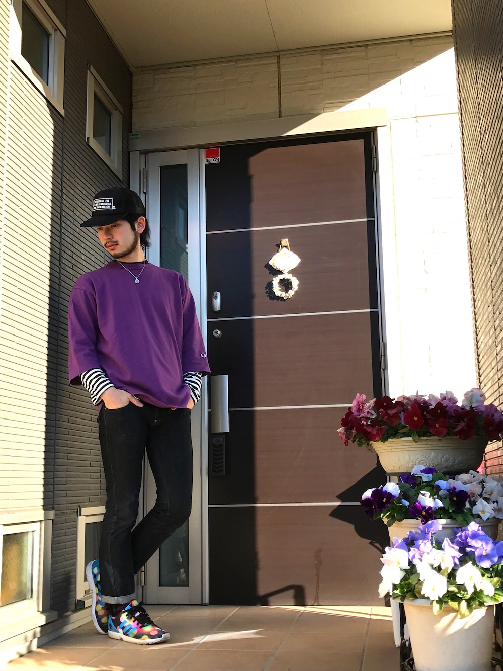 おはようございます☀ 昨日のコーデは想像以上に好評で、新しいフォロワーさんもたくさん増えて嬉しかったです( * ›ω‹ ) 改めましてみなさまよろしくお願い致します🌸✨ そして昨日WEARで出勤してるって見たのでってお客様が来てくれましたー😆 そー言ってもらえるとすごい嬉しいです🎵 池袋で働いてるのでこっちくることがあれば是非(笑) さて、今夜諸事情で髭を剃る予定なので、その前に男らしいストリートスタイルを꒰✩⌯௰⌯꒱◞ 半年ぶりぐらいのボーダーに、七分袖のチャンピオンをレイヤードして、デニムでシンプルにまとめました! 袖レイヤードってほとんどしないので、シンプルコーデですが、自分的には新鮮です❣ 色もパープルチョイスで個性を出しました☀ 靴で遊びつつ、キャップは昨日に引き続きまさあきさんのキャップで(*´∇`*) 髭繋がってるとこーゆー男らしいスタイルやりやすいですよねー! あごひげなんかは残すつもりなのでそれも踏まえてまたコーデ考えなきゃ! それではお仕事行ってきまーす! PS.ピックアップタグレオパードのオススメコーデに載ってたので思わずスクショしちゃいましたー! サマルさん、ゆーじさん、サンさんといった憧れのみなさんと同じページにいれて嬉しかったです( * ›ω‹ )🌟🌟