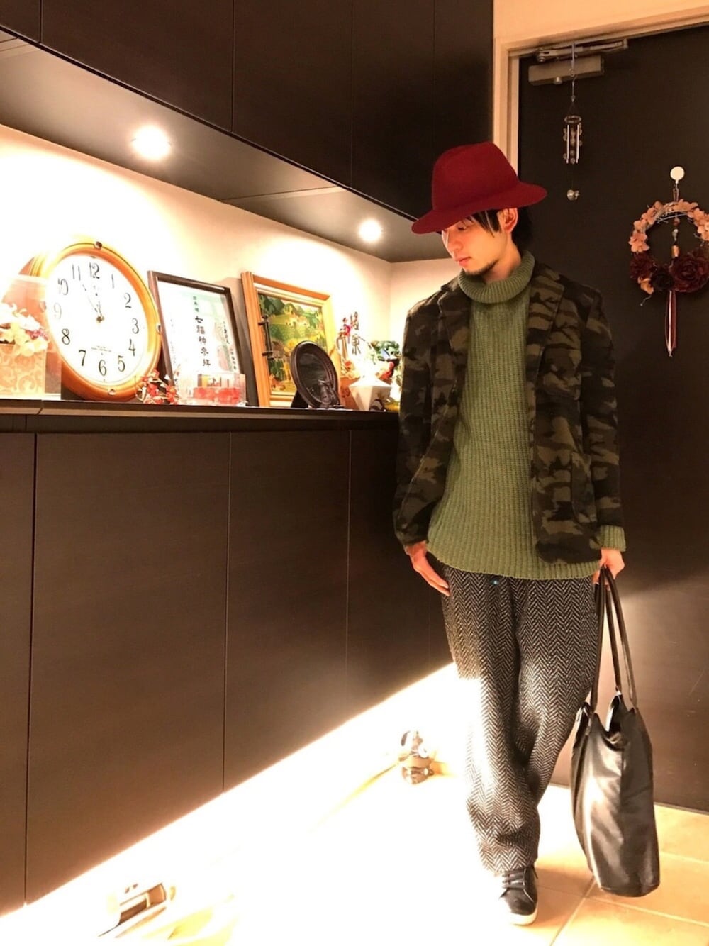 おはようございます☀ 宣言通り、もみあげからつながっていた髭を剃りました!! 3週間であそこまで生えたので、生やそうと思えばいつでも生やせそうなので心残りはそんなにありません(笑) ただ、周りから不評なので何かなければもう生やすことはないと思います(´・ω・`) ちなみに顎髭だけはさり気なく残してあります(笑) さて、コーディネートですが、ピックアップタグの『カーゴパンツ』を1本も持ってなかった(昔あったけど売っちゃった…)ので、カモフラを使ったミリタリーテイストで乗っかりました꒰✩⌯௰⌯꒱◞✨ カーキのタートルニットにカモフラ柄のニットジャケット🍷❤️ ヘリンボーン柄のワイドパンツで明日のピックアップタグである柄×柄合わせをしつつ、赤のハットで自分らしさを出しました😆🎵 赤と緑の合わせが季節外れのクリスマスカラーみたいになっちゃいました🎄🎅www 明日はお休みなので1年ぶりの1人ディズニー行こうかなって目論んでます😍 シャインオン観れてないし、テーブル終わる前に観ておきたいからシーに行く予定です🌊 もし行く方いたらお会いしましょー!(笑) そんなとこです! それではお仕事行ってきますヽ(*´∀`)🌟