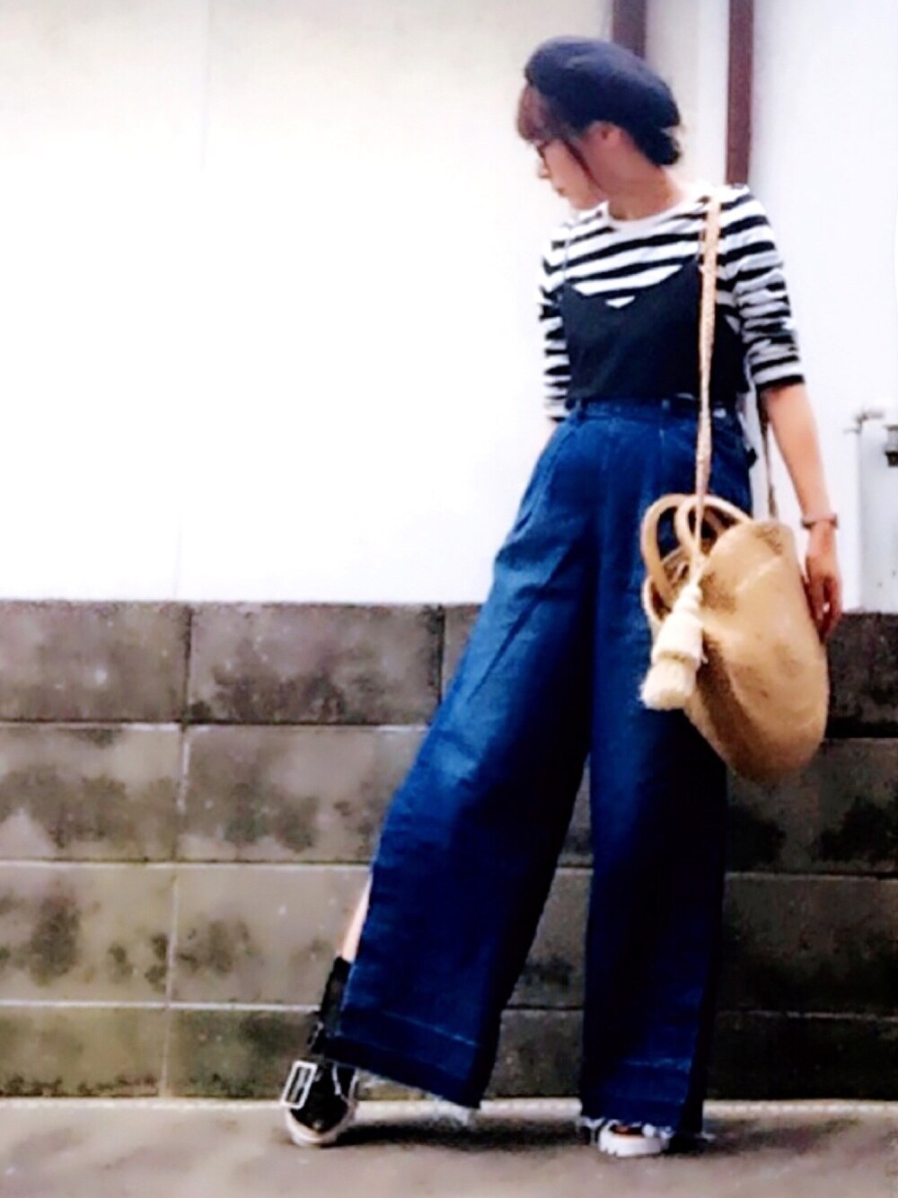 こんにちわヾ(๑╹◡╹)ノ"🎶 ご覧いただき、ありがとうございます💐 珍しく#きょコ❁︎ 今日のタグ🏷 #ビスチェ でコーデを組みました(♡ˊ艸ˋ)♬* このビスチェ、ホントはチェックなんだけど、柄が喧嘩しそうだから裏のブラックにして着てみました((`・∀︎・´))✨ 遅ればせながら、今期初サンダル👡 バックショットは小窓をご覧ください😃💕