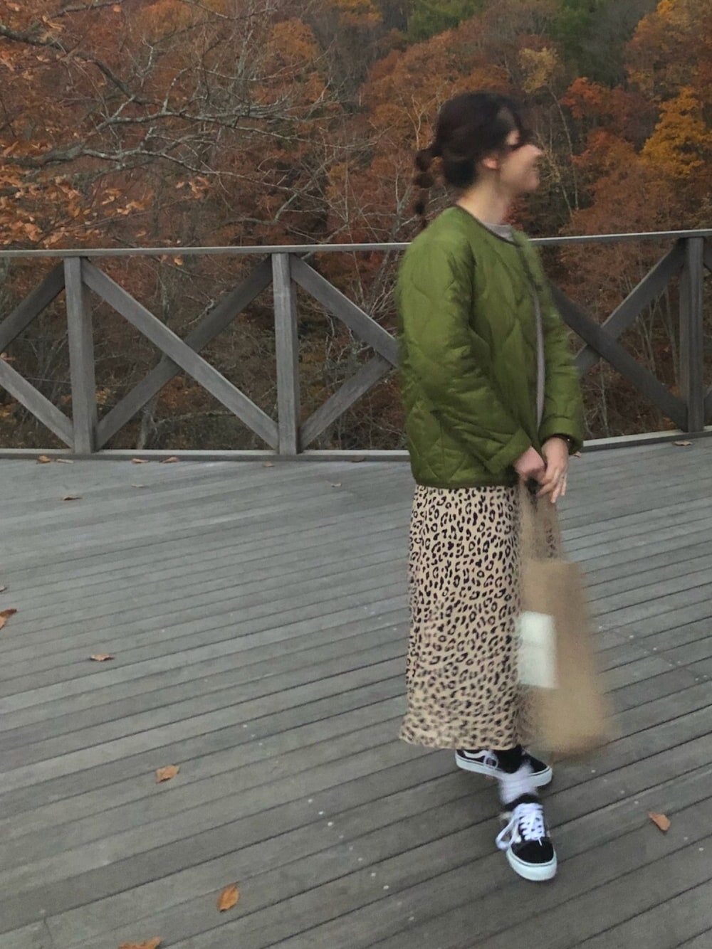 紅葉見に来ました🍂🍁このロペのレオパード柄のスカートめちゃくちゃ可愛い💯