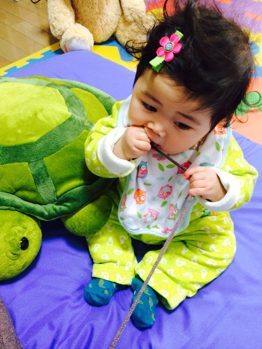 トリさんコーデ( ´ ▽ ` ) 私のスウェットのヒモを必死で舐めまくる娘、、、 ママはヒモなしで写真撮りたかったのよー(-。-; けど君の執念に負けました 笑(。-_-。)