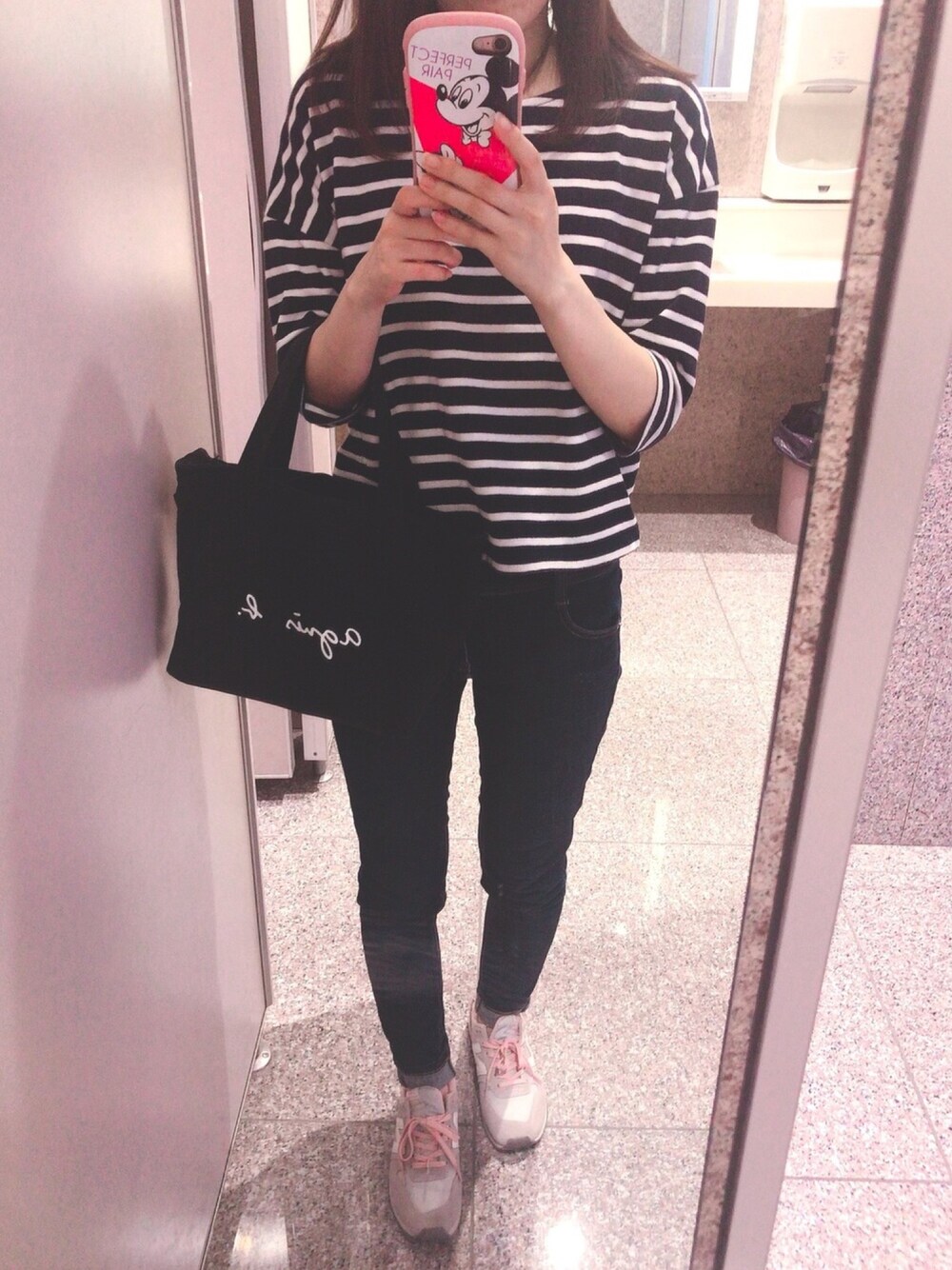 本日は美容院へ行っただけの 楽ちんコーデ👚 そしてまたボーダー笑 トップスは妹から貰ったおさがり!笑 6分丈くらいで今の暑さに ちょうどよかった〜✨ 上下とも写真黒に見えるけどネイビーです!笑