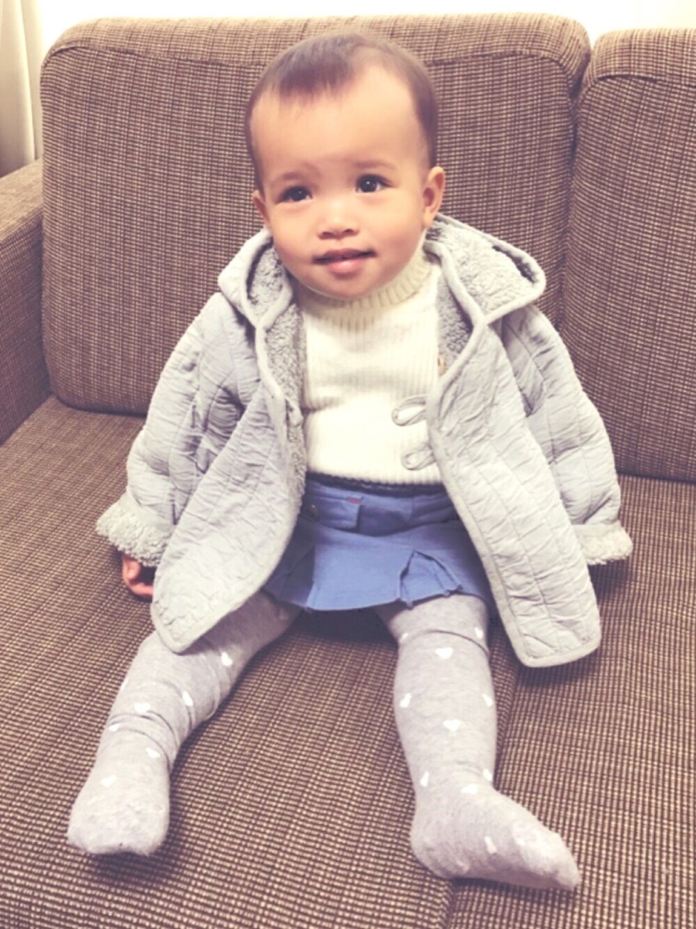 久々の更新‼︎ アウターはBONTON甥っ子のおさがり♡ありがたや♡♡グレーだから女の子でも違和感なく着こなせるかな‼︎