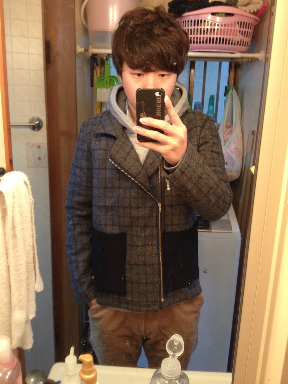 ライダースジャケットわ以前掲載したもので、自作したものです! パーカーとあわせてカジュアルにしました!!