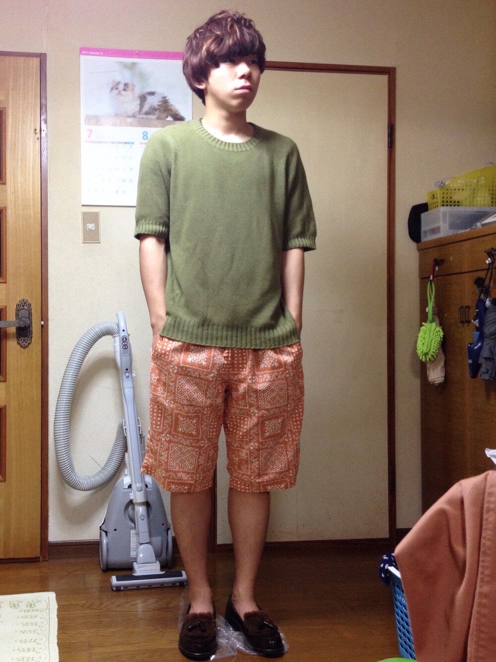 久しぶりの投稿です!! カーキーのサマーニットにオレンジのペイズリー柄のショーツです ゆったりコーデなので足元わキレイめにローファーで! ただシンプルなのをもってないので、 ファーつきのローファーで 季節感なさすぎになりましたw