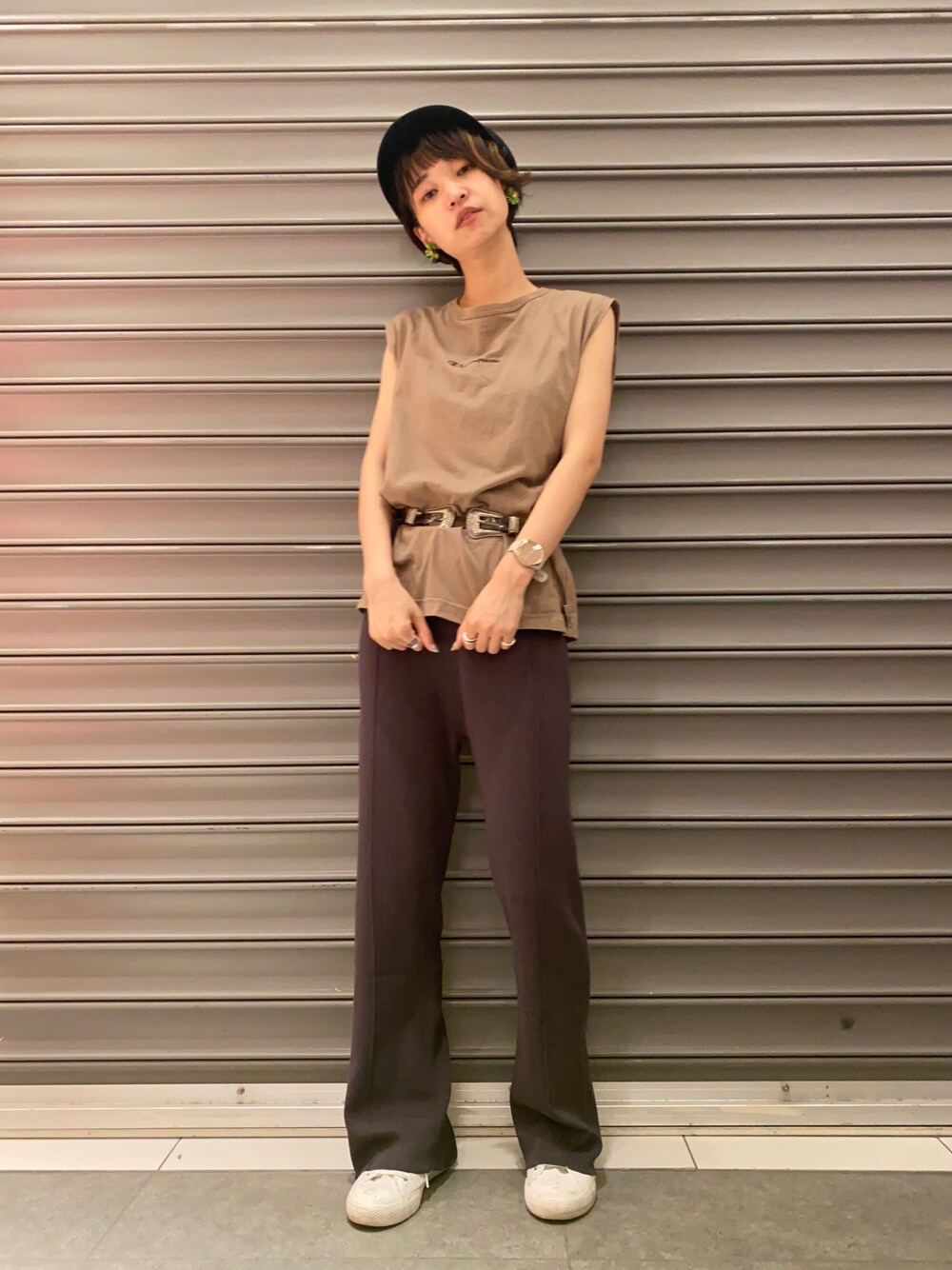 のっちのパンツ「バックスリットニットパンツ」を使ったコーディネート