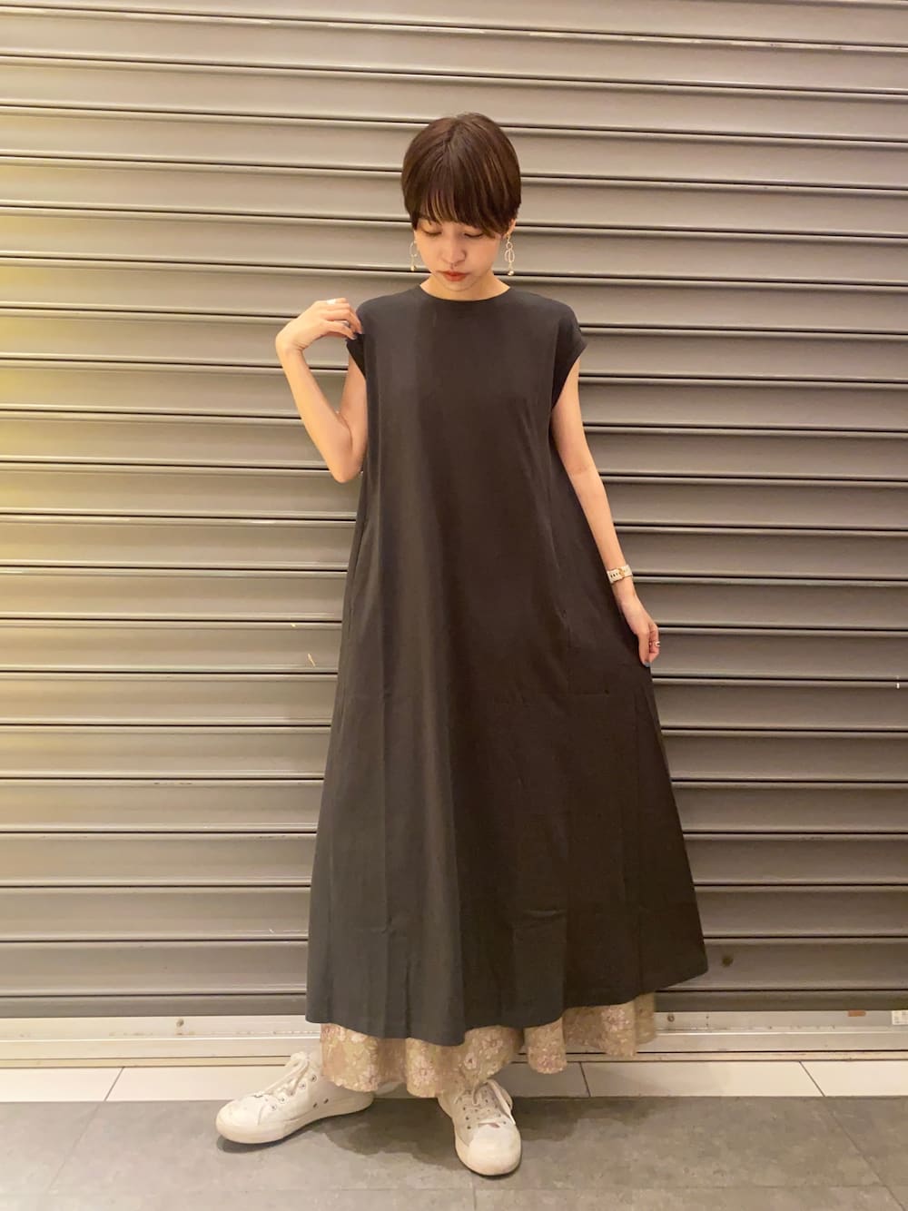 のっちのワンピース「Aラインスリーブレスカットワンピース *」を使ったコーディネート