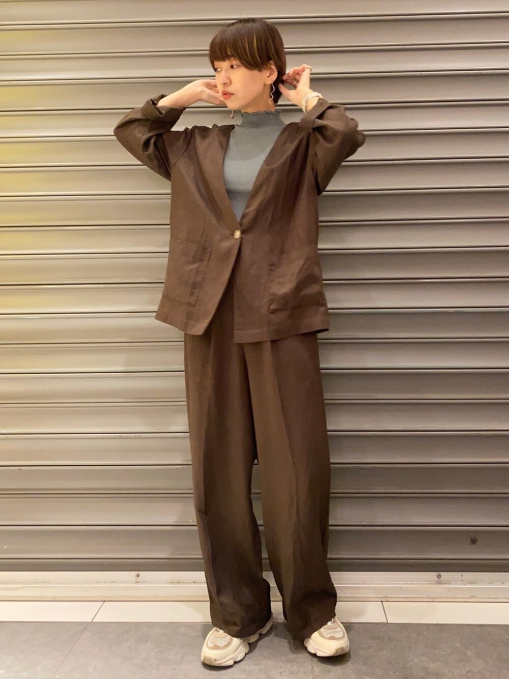 のっちのノーカラージャケット「【WEB限定】ジャケット+ワイドパンツSET *」を使ったコーディネート