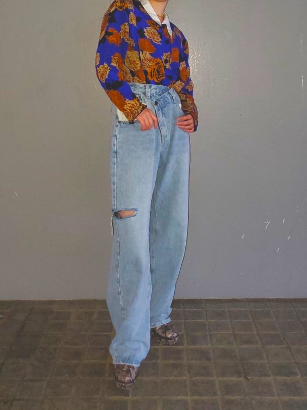大好きなブランドポシェの デザインが素敵なデニムパンツ 厚底パイソン柄のブーツで 辛くいきました