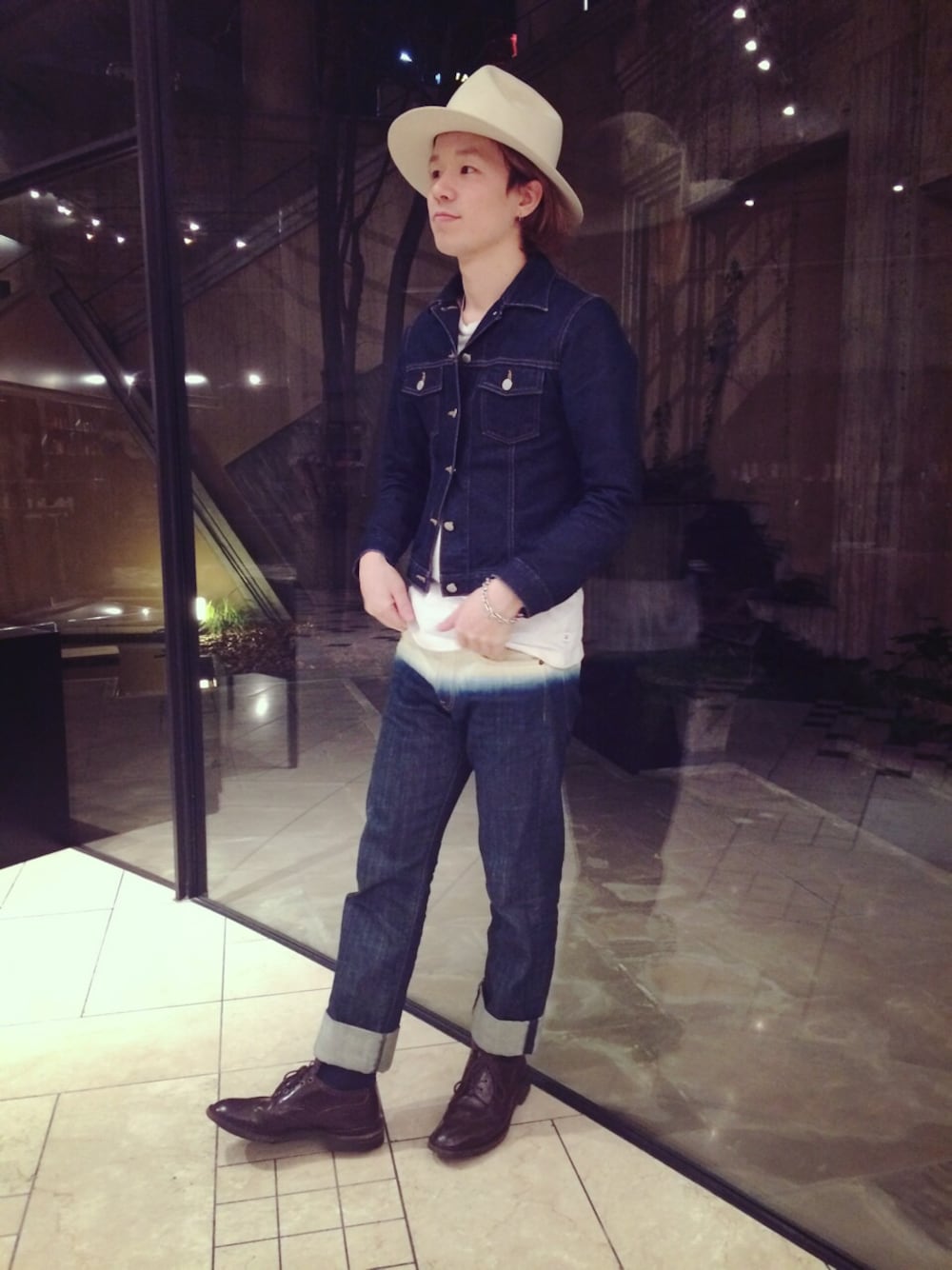 今回は古着のデニムジャケットとブリーチがかったデニムを合わせたセットアップぽいスタイル(笑)