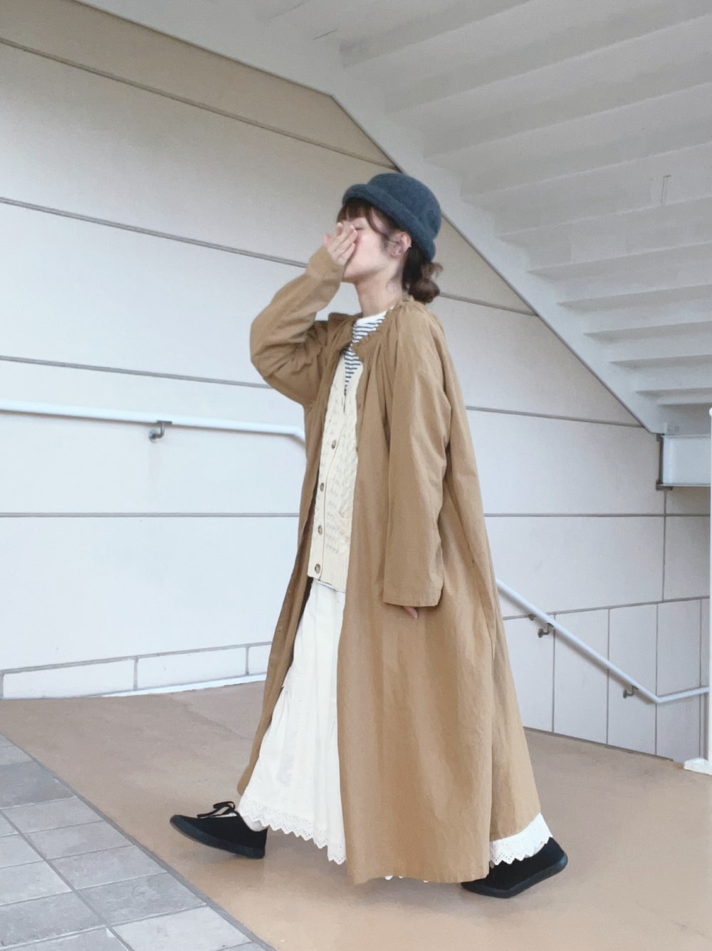 も な こ です。 ナチュラルコーデ*ˊᵕˋ* ホワイトベースの異素材でコーデして ポイントカラーのワンピースを羽織ってみました♪ 後ろ姿でも裾からフリルが出て良きです。 浜松志都呂店のInstagramで親子コーデ載せるので、 そちらもチェックしてみて下さい♡
