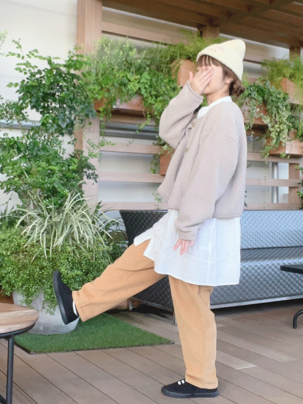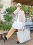 も な こ です。 定番な白のチュニックブラウスと 低身長さんでも履きやすい丈の コーデュロイパンツ。 そして、 もこもこジャケット。 こちらは、 着丈が短めでチュニックやワンピースとの 相性抜群♪ あたたかく、可愛らしく着ていただけますꕤ︎︎·͜· 本日からノベルティフェア開催です! (3枚目) 思った以上のビッグなトートバッグで 旅行やマザーズバッグとしてもお使い頂けます!